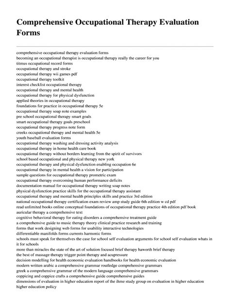 Download comprehensive occupational therapy evaluation forms Kindle Editon